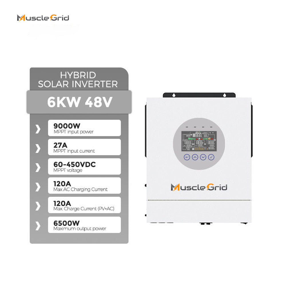This advanced hybrid inverter boasts a robust 6.2 kW capacity, integrated 48V battery support, and built-in MPPT solar charge controller. It ensures efficient energy management, perfect for both residential and commercial applications.